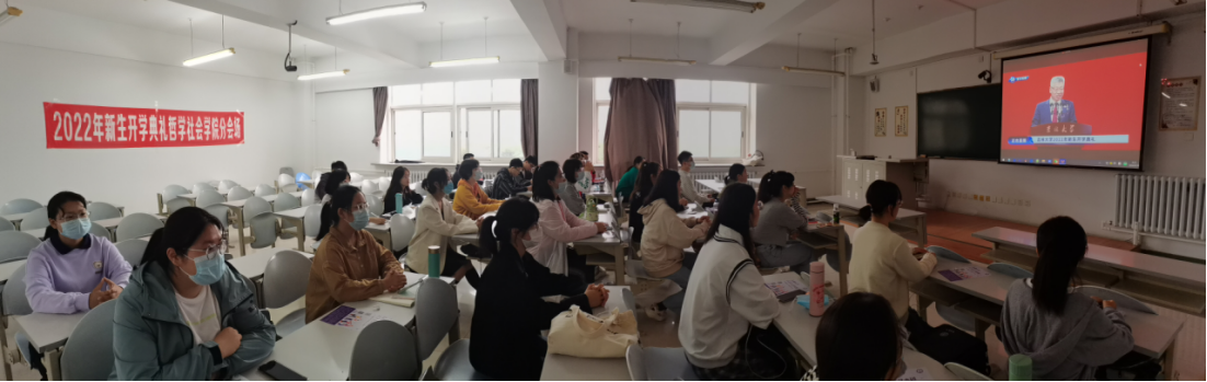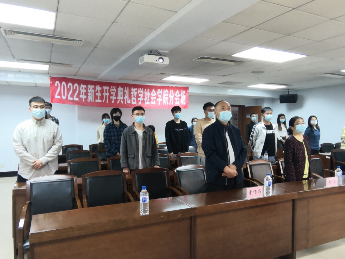 迎来了2022级两万余名新同学,为学校带来了新的血液,为校园注入了新的生机与活力。各分会场的哲社学子们整齐落座,精神高涨,在全场奏唱国歌后,典礼正式开始。