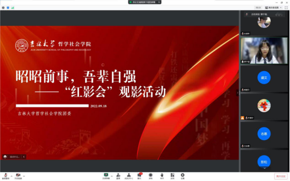 团委推出“红影会”活动,于9月18日晚组织开展线上观影活动。以电影为载体学党史,回忆历史瞬间,畅谈感想领悟,观看红色影片,回忆峥嵘岁月,传承红色基因。本次活动由郭于瑄同学主持,H视频