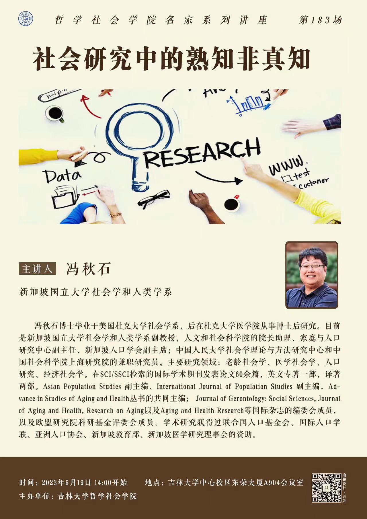 【H视频 名家系列讲座第183场】冯秋石:社会研究中的熟知非真知
