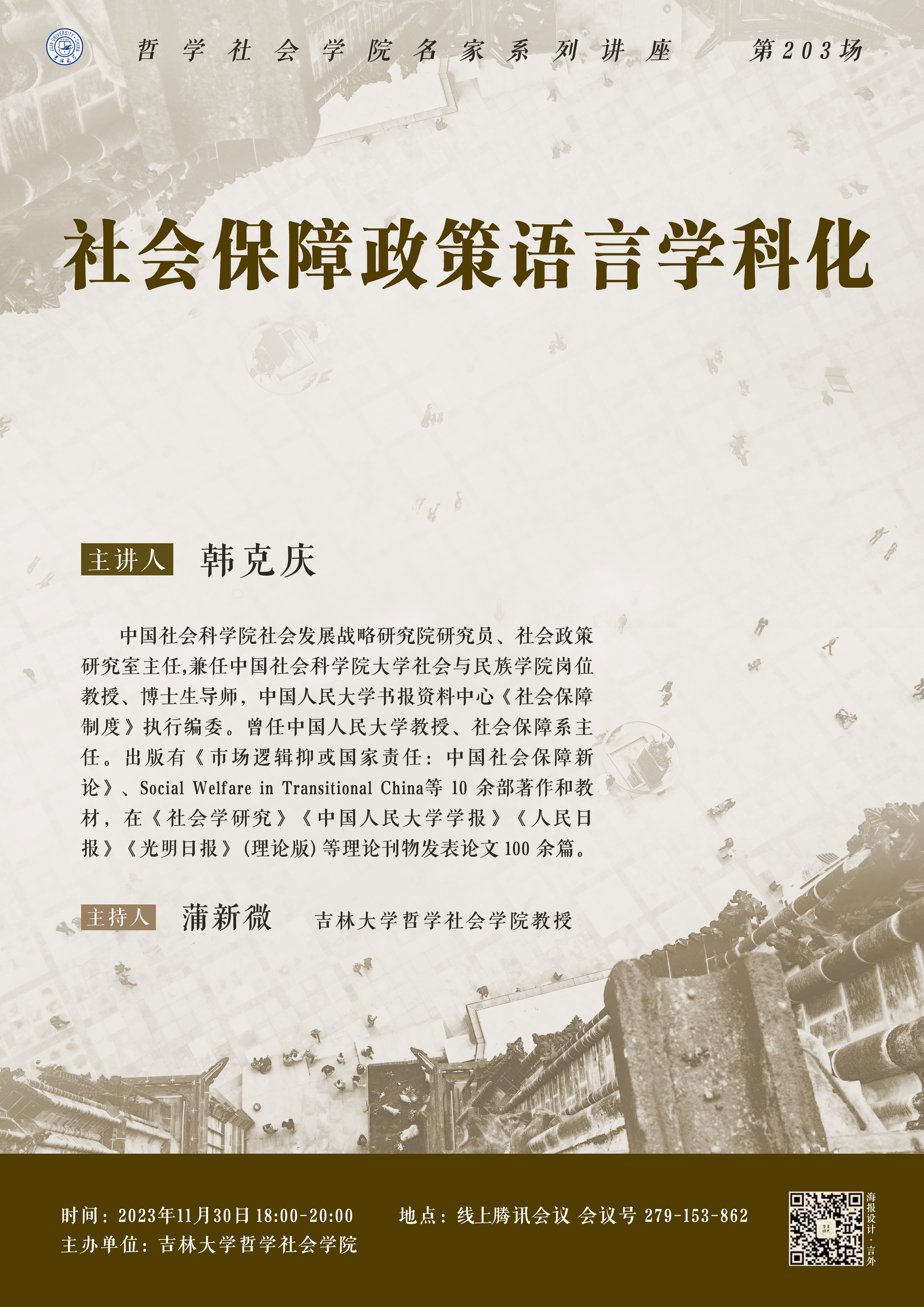 【H视频 名家系列讲座第203场】韩克庆:社会保障政策语言学科化