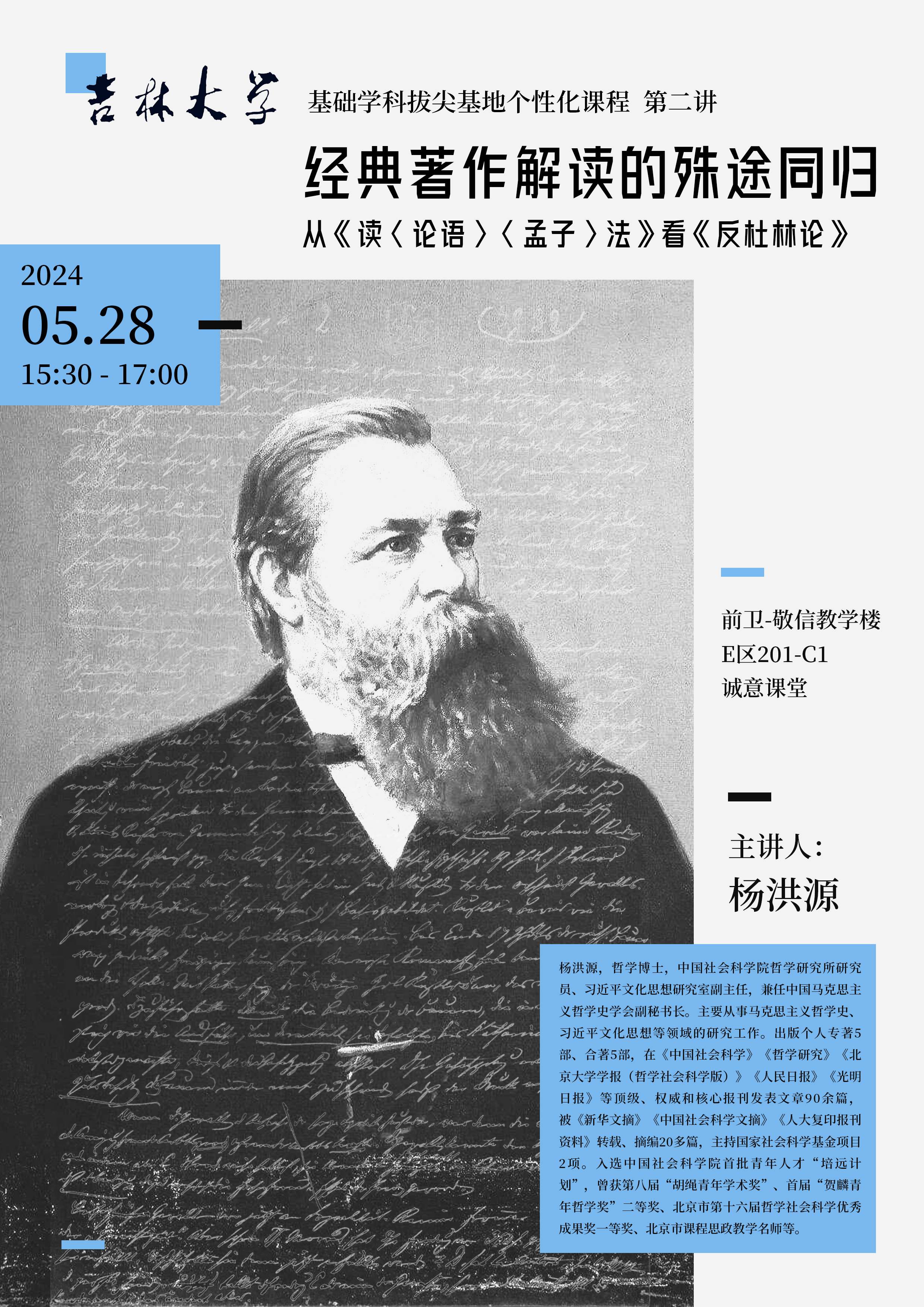 【H视频 基础学科拔尖基地个性化课程第三讲】杨洪源:经典著作解读的殊途同归——从《读〈论语〉〈孟子〉法》看《反杜林论》