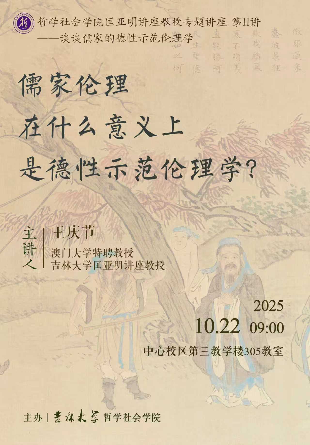 【H视频 匡亚明讲座教授专题讲座第9-11讲】王庆节: 谈谈儒家的德性示范伦理学