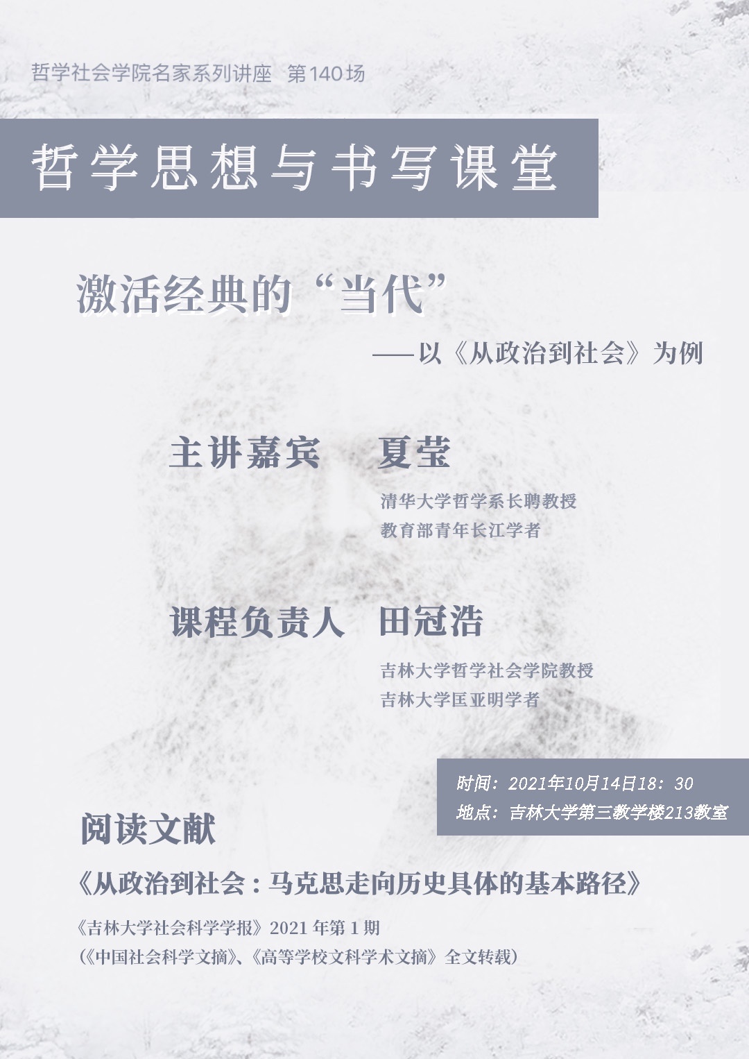 【H视频 名家系列讲座第140场】【哲学思想与书写讲堂】夏莹:激活经典的“当代”——以《从政治到社会》为例