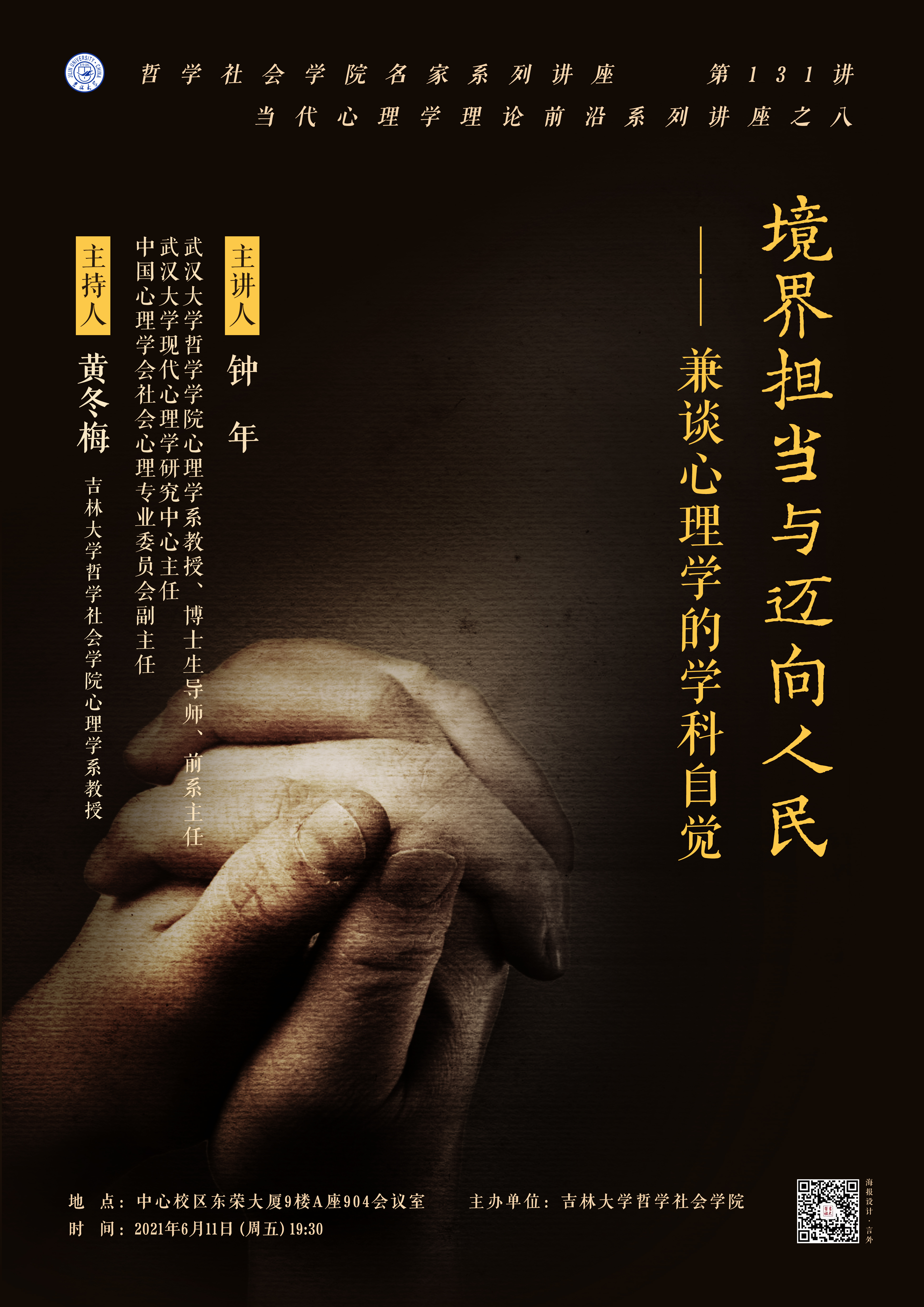 【H视频 名家系列讲座第131讲】【当代心理学理论前沿系列讲座之八】钟年:境界担当与迈向人民——兼谈心理学的学科自觉