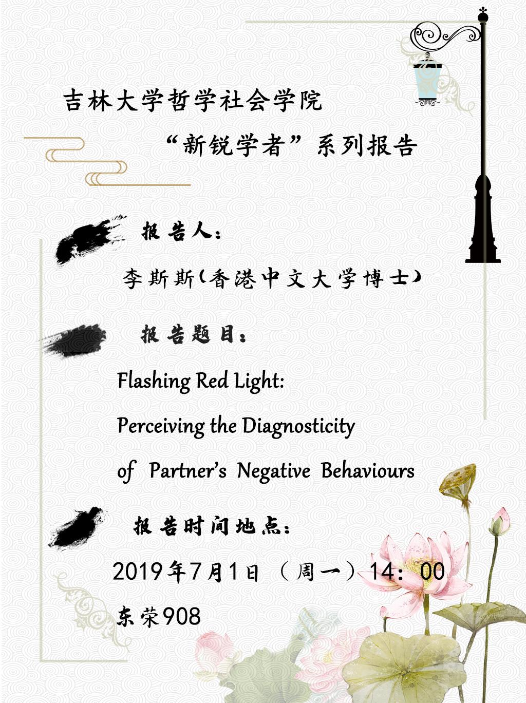 【H视频 “新锐学者”系列】李斯斯:Flashing Red Light:Perceiving the Diagnosticity of Partner's Negative Behaviours