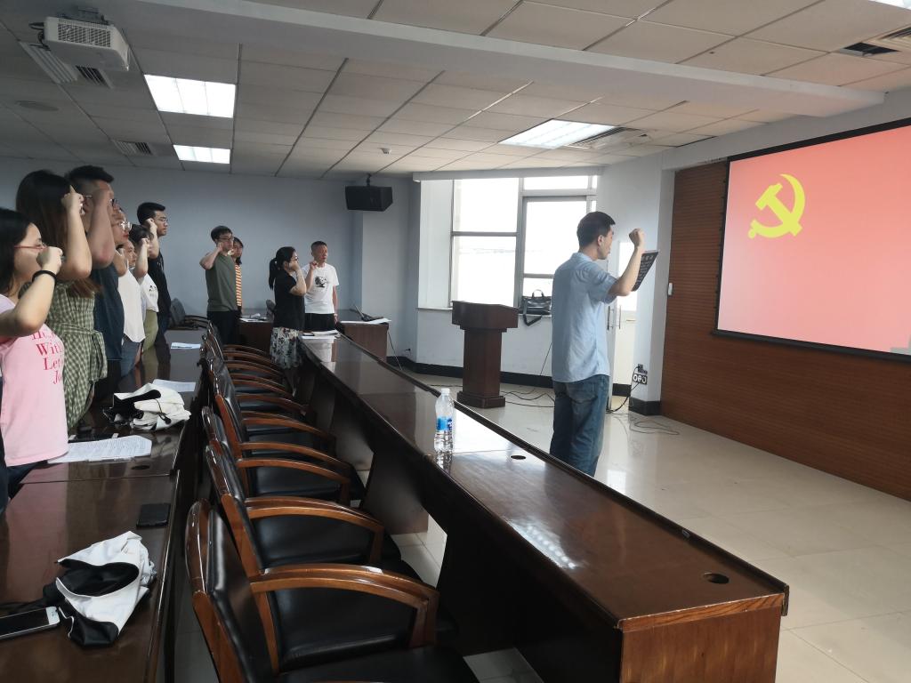 新发展的28名预备党员宣誓仪式在东荣大厦904室顺利召开,并取得了圆满成功。学院党委副书记兼副院长赵洁同志、党委副书记张俊峰同志以及全体新发展的预备党员、入党积极分子出席了本次宣誓仪式。会议由H视频