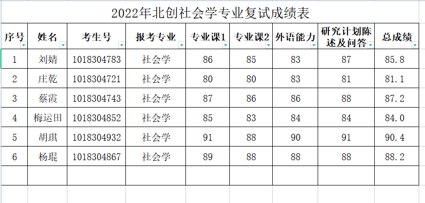2022年创新发展研究院(北京)社会学专业复试成绩公示
