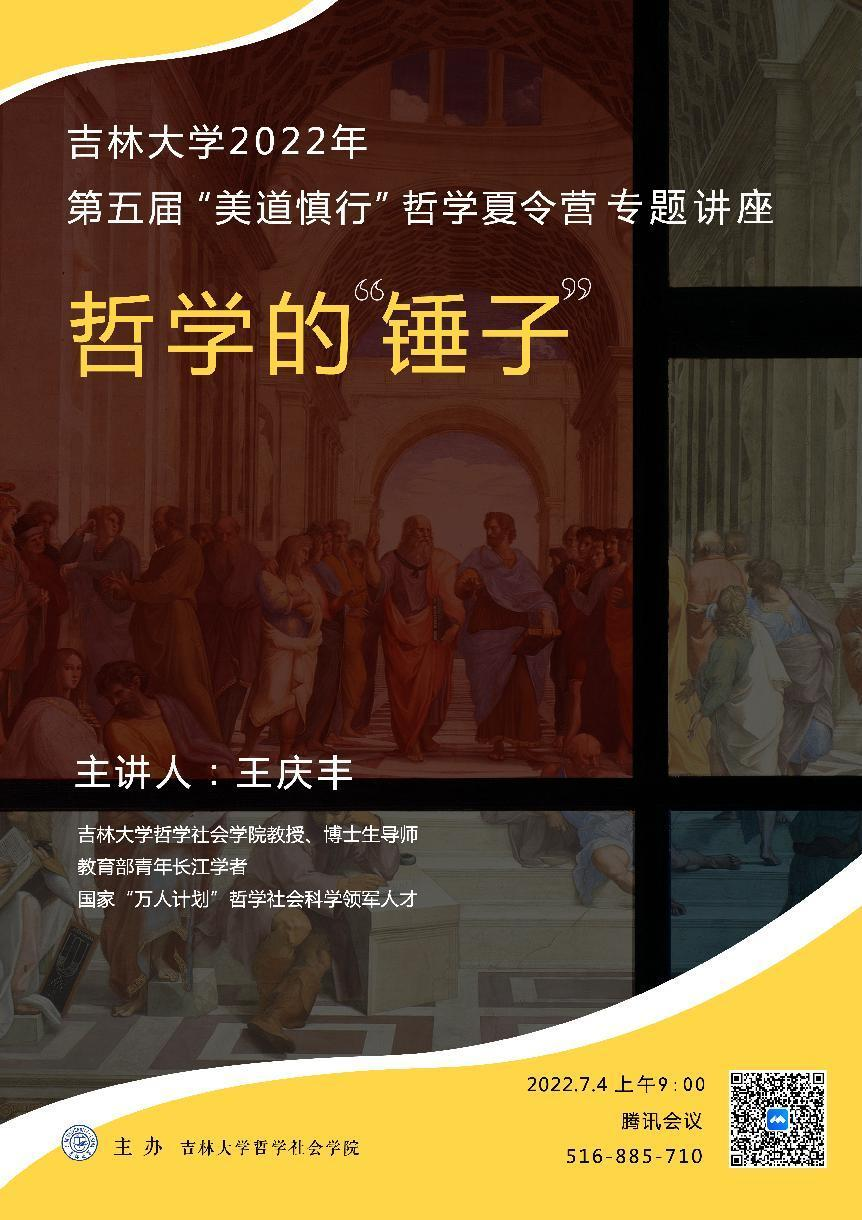 2022年“美道慎行”哲学夏令营的全国各高校优秀学子们作了以“哲学的‘锤子’”为题的学术讲座。本次报告由哲学系党支部李聪书记主持。