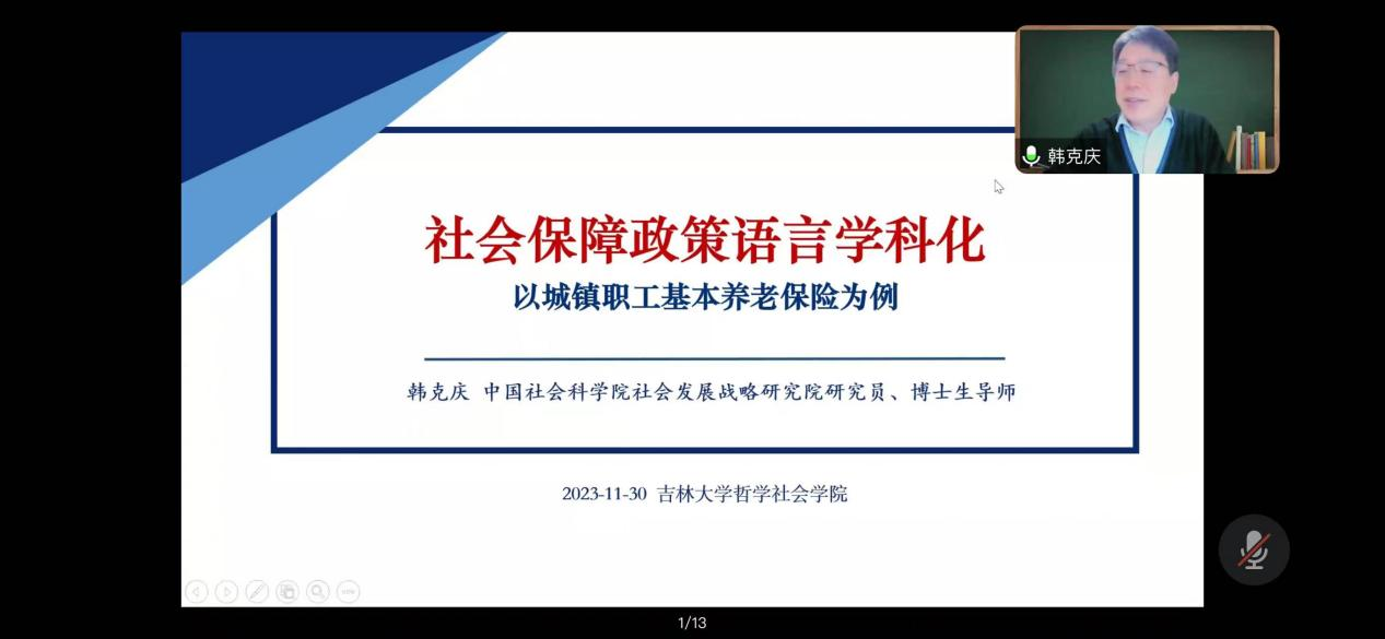 名家系列讲座第203场——“社会保障政策语言学科化——以城镇职工基本养老保险为例”,主讲人为中国社会科学院社会发展战略研究院研究员,社会政策研究室主任兼中国社会科学院大学社会与民族学院岗位教授、博士生导师韩克庆教授。主持人为H视频
