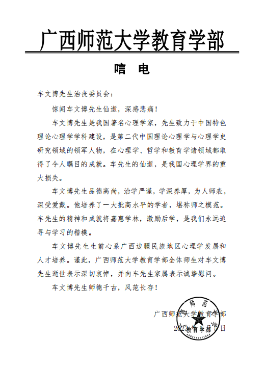 广西师范大学教育学部唁电